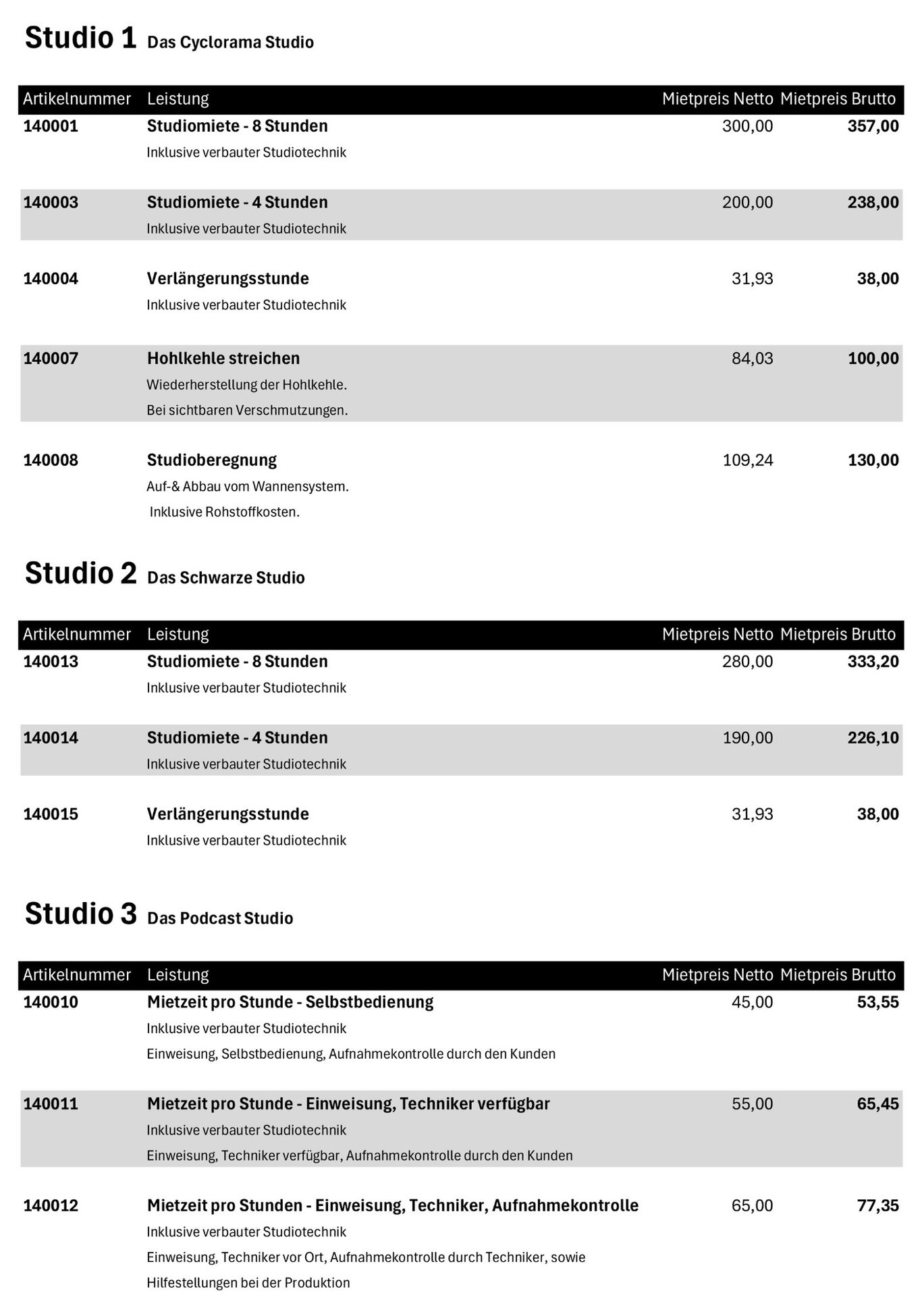 Preisliste